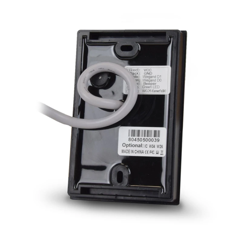 Корпус считывателя KR100E выполнен из прочного пластика. Класс защиты IP65 (система классификации степени защиты оболочки электрооборудования), что означает надежную защиту внутренних компонентов от попадания пыли, а также устойчивость к перепадам температур (-20°C ~ +65°C).