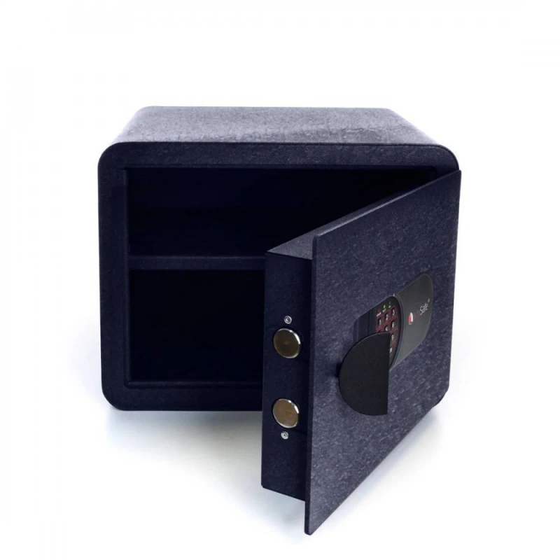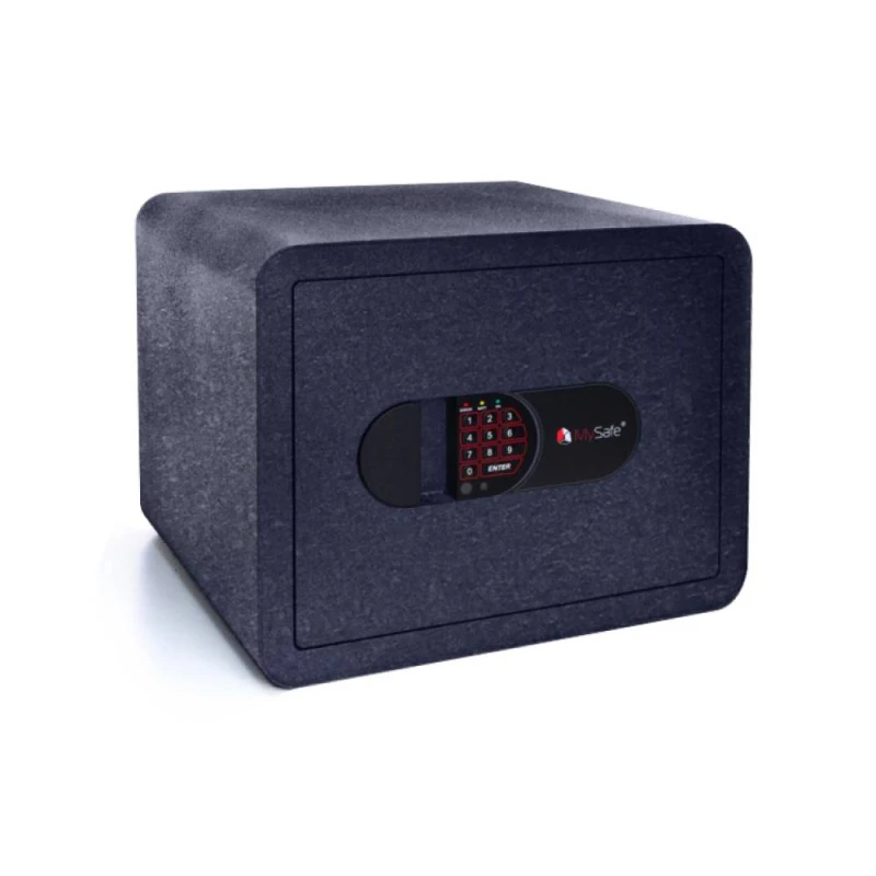 Обладнано електронним кодовим замком MySafe (виробництво Україна). Замикання дверей здійснюється двома хромованими активними ригелями, що обертаються. Товщина ригеля 25мм.