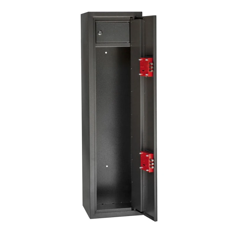 Сейф оружейный Е-100К2.Т1.7022 для хранения 1 сложенного ружья, с 2 ключевыми замками и трейзером.