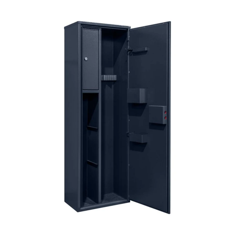 Сейф збройовий GLST.130.K для зберігання 4 рушниць, з ключовим замком, трейзером та 3 полицями.