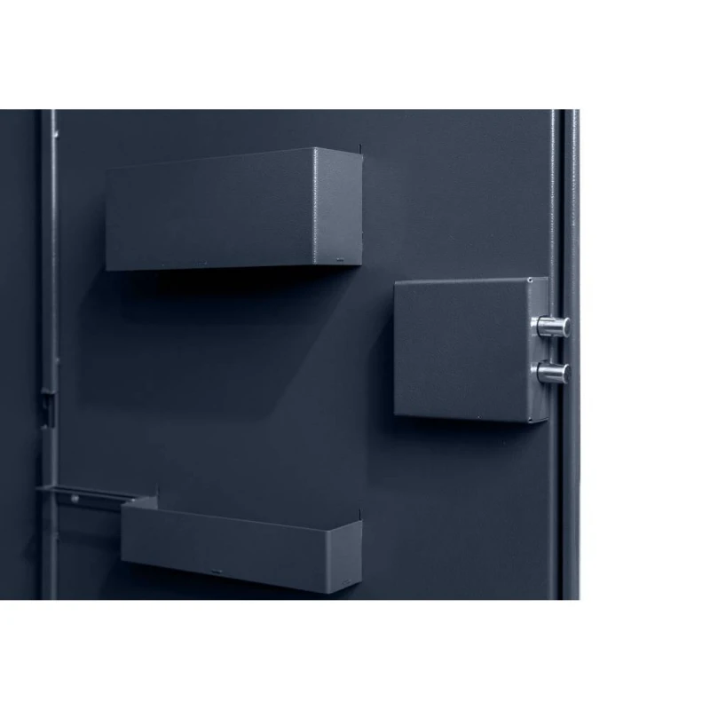 сейф оснащений сувальдним замком з двома хромованими ригелями, що обертаються.