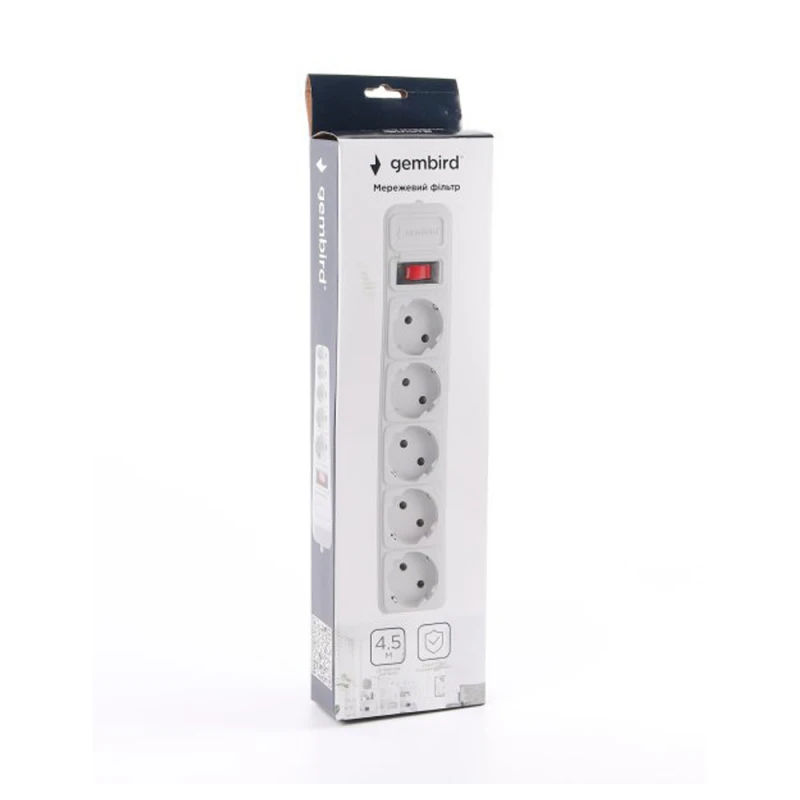 Сетевой фильтр GEMBIRD SPG5-G-15G, 4.5 м кабель, 5 розеток