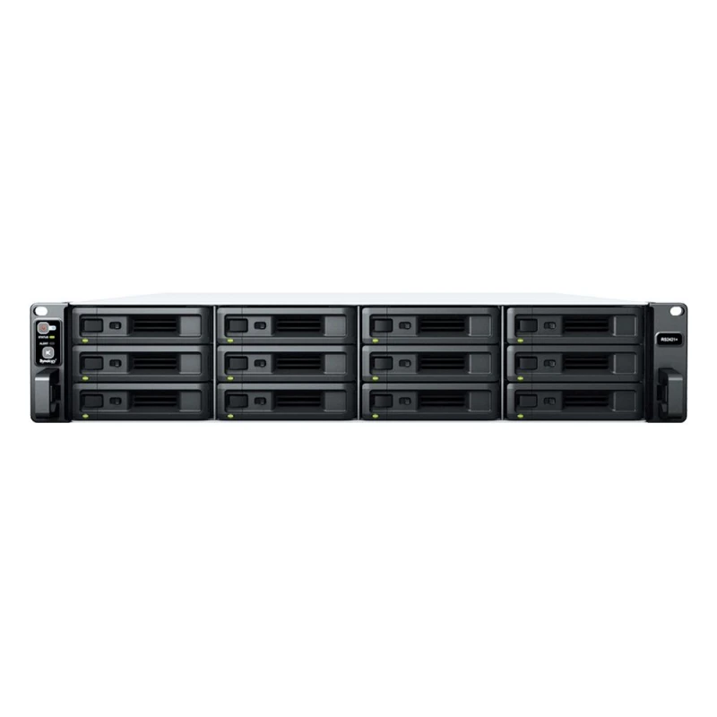Система хранения данных RS2421+ – универсальный сервер хранения высотой 2U с 12 отсеками, предназначенный для работы в разнообразных корпоративных средах. Имеет возможность масштабирования до 24 дисков и предназначен для экономичного управления и обмена файлами, а также обладают мощными возможностями резервного копирования, предназначенными для предприятий с растущими объемами данных. Устройство обеспечивает скорость последовательного чтения 2200 МБ/с блоками по 64 КБ и скорость последовательной записи 1154 МБ/с. Процессор четырехъядерный 64-bit AMD Ryzen V1500B 2.2 ГГц, память 4GB ECC UDIMM DDR4, 12 отсеков для жестких дисков.