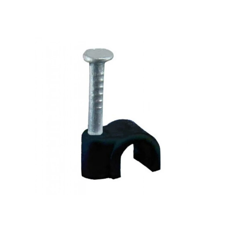 Скоба круглая с гвоздем для кабеля R-8 черная (100 шт.)