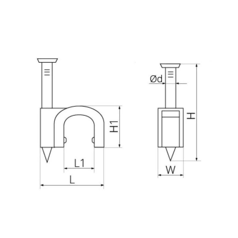 - Все кабельные скобы с гвоздями поставляются в собранном виде (гвоздь вставлен в скобу)