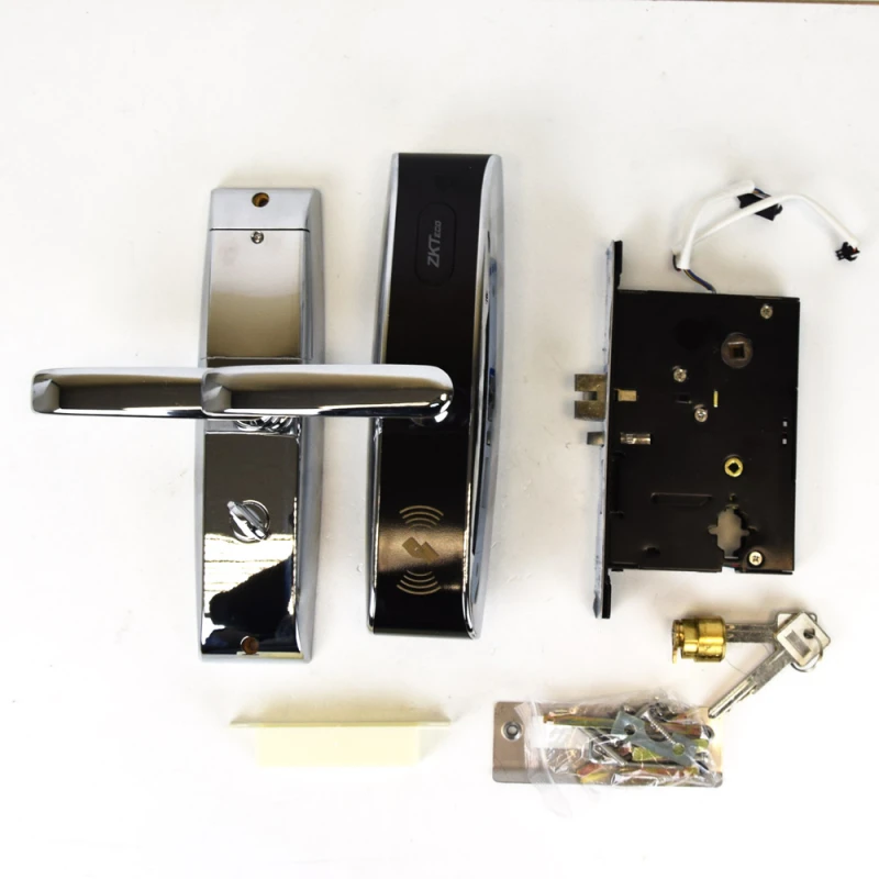 Электронный замок ZKTeco ZL400 left для левых дверей для гостиниц со считывателем RFID карт Mifare для ограничения доступа посторонних лиц в номера и служебные помещения отеля. Замок совместим с USB кодировщиком ZKTeco D147-H