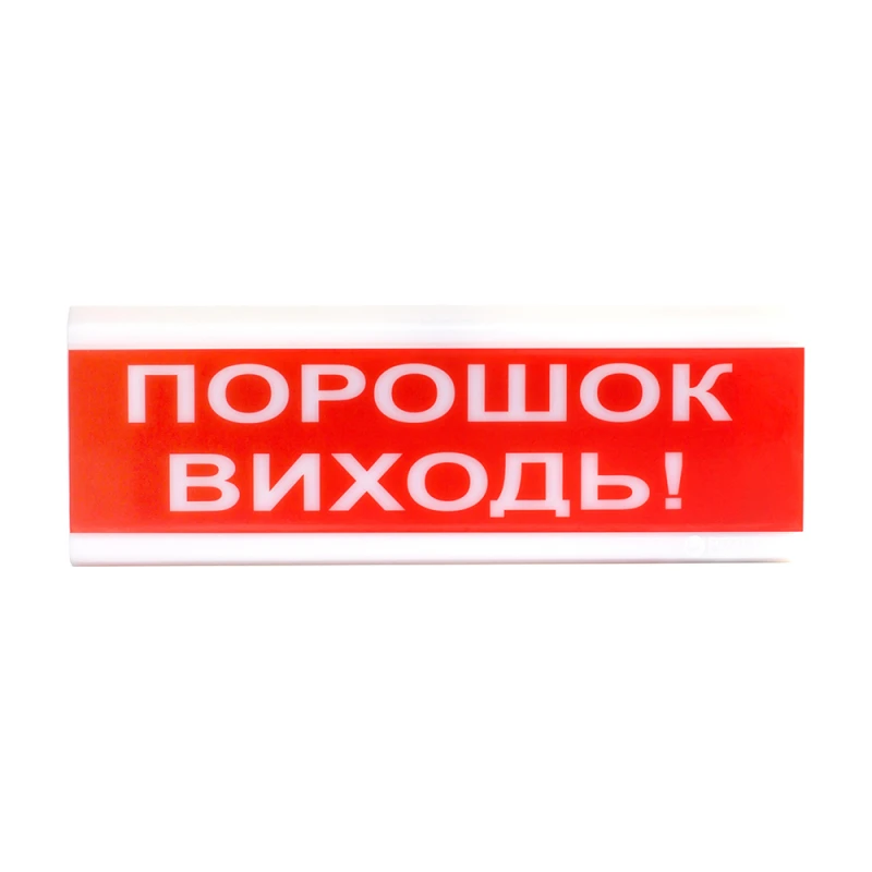 Указатель световой ОС-6.7 (12/24V) "ПОРОШОК ВИХОДЬ!" для установки внутри помещений. Подключается к охранным и пожарным ППК. Табло указателя освещается с помощью SMD светодиодов, что делает надпись видимой в темное время суток.