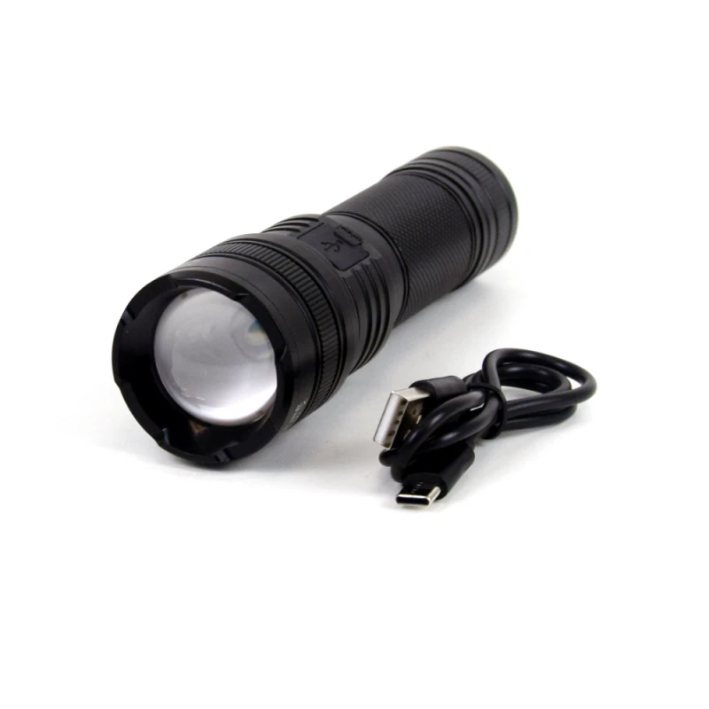Телескопічний ручний ліхтарик, що перезаряджається, з номінальною потужністю 15 Вт. Яскравість: 900 лм. Дальність променя: 300 м. Вбудована літієва батарея, що перезаряджається 26650. (Також сумісний з акумулятором 18650). Зарядний порт Type-C. Ступінь захисту: IP43. Матеріал: алюмінієвий сплав. Габаритні розміри: 148 х 43 х 33 мм. Вага: 178 г.