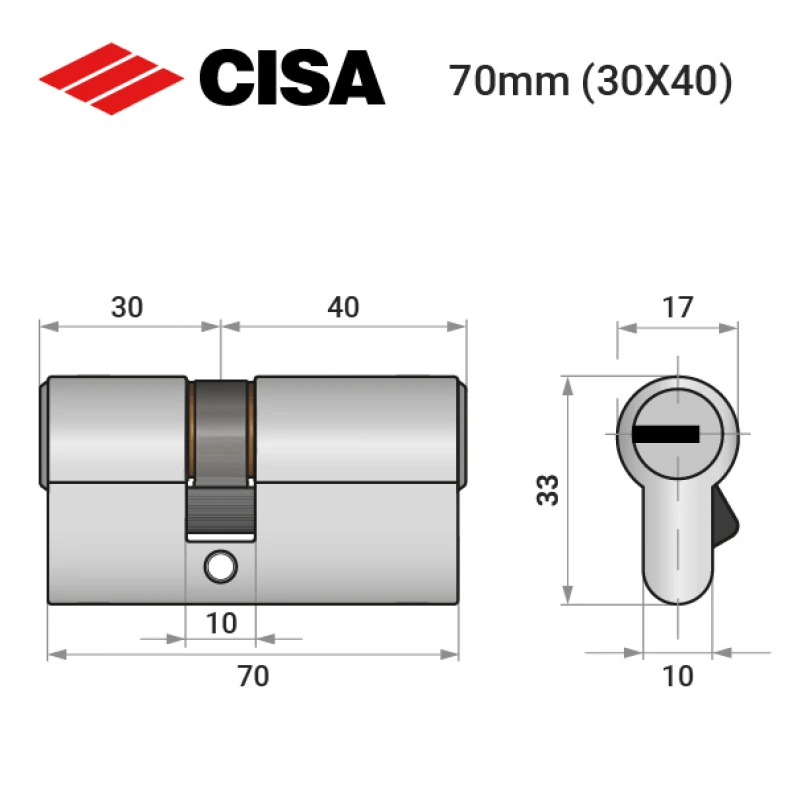 Цилиндр CISA ASIX P8 70 (30*40) никель матовый 3 ключа
