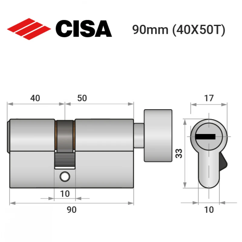 Цилиндр CISA ASIX P8 90T (40*50T) никель матовый 5 ключей
