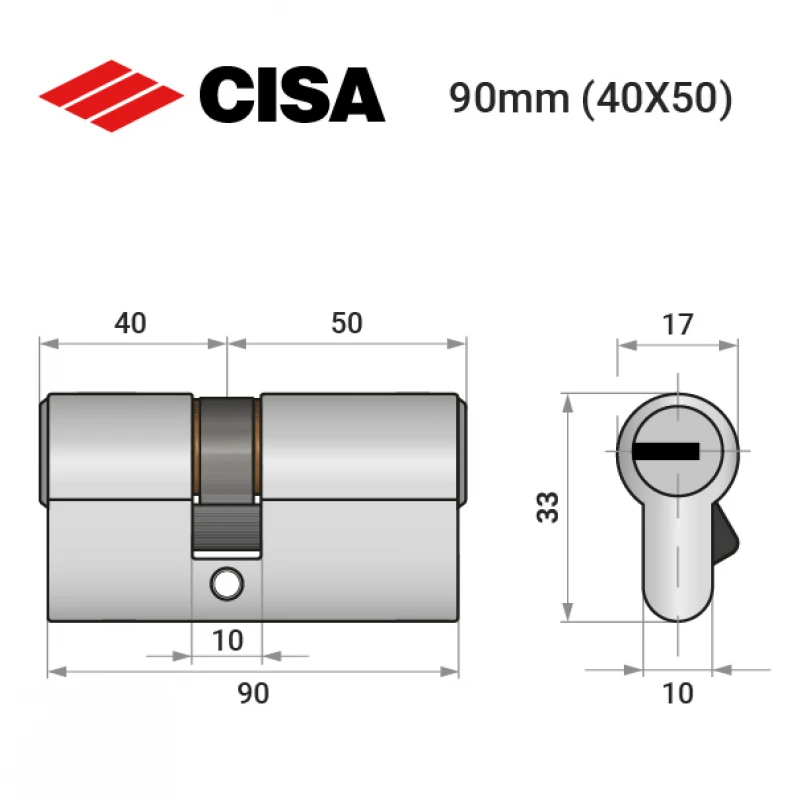 Цилиндр CISA ASIX P8 PRO 90 (40*50) никель матовый 5+1 ключ