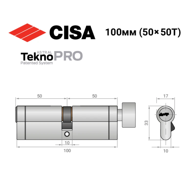 Купить цилиндр CISA Astral Tekno PRO 100T (50*50T) никель матовый в розницу и оптом можно на нашем сайте.