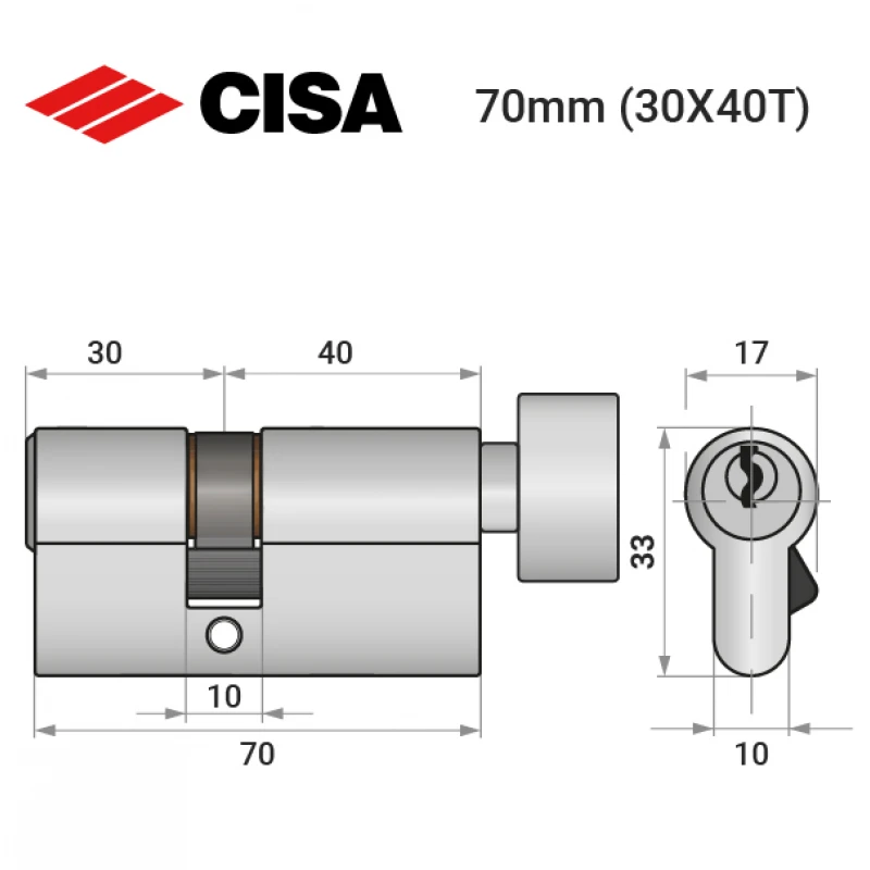 Цилиндр CISA C2000 70T (30*40T) черный