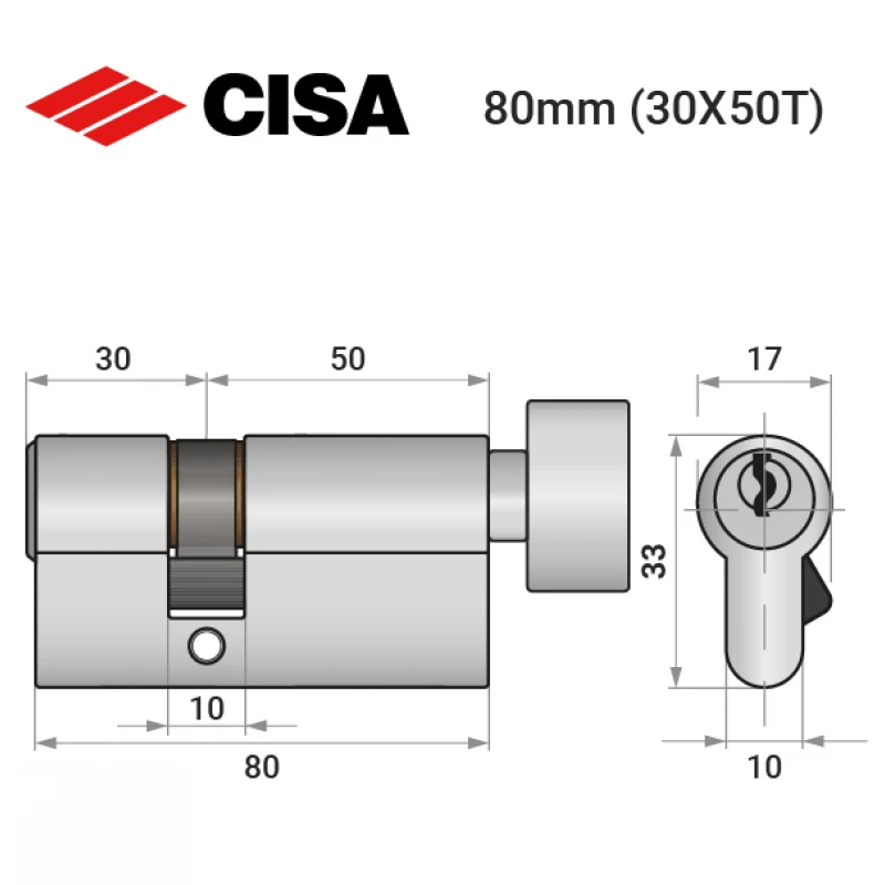 Цилиндр CISA C2000 80T (30*50T) никель матовый 5 ключей