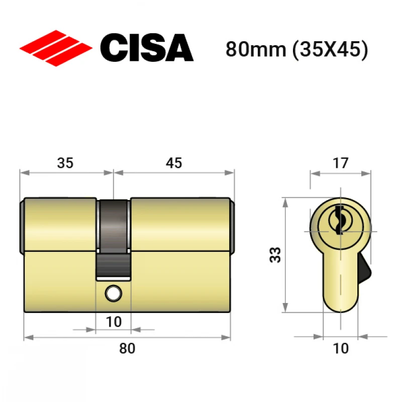 Купить цилиндр CISA 08010 80 (35*45) оптом и в розницу можно на нашем сайте.