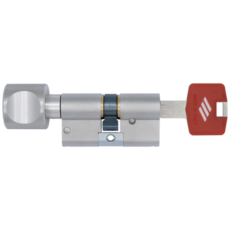 По умолчанию цилиндр работает в режиме “антипаника” (Cylinder Clutch System): открывается снаружи, даже если изнутри ключ находится в цилиндре.