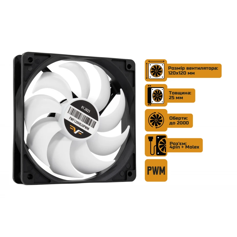 Вентилятор Frime (FWF120HB20PWM) 120x120x25мм, PWM Black/White