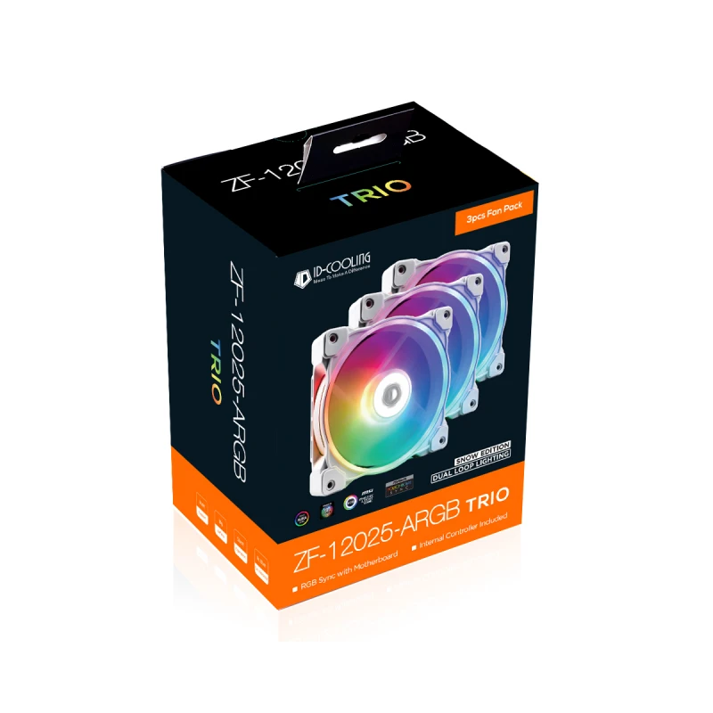 Вентилятор ID-Cooling ZF-12025-ARGB-TRIO-SNOW (3pcs Pack), 120x120x25мм, 4-pin PWM, білий