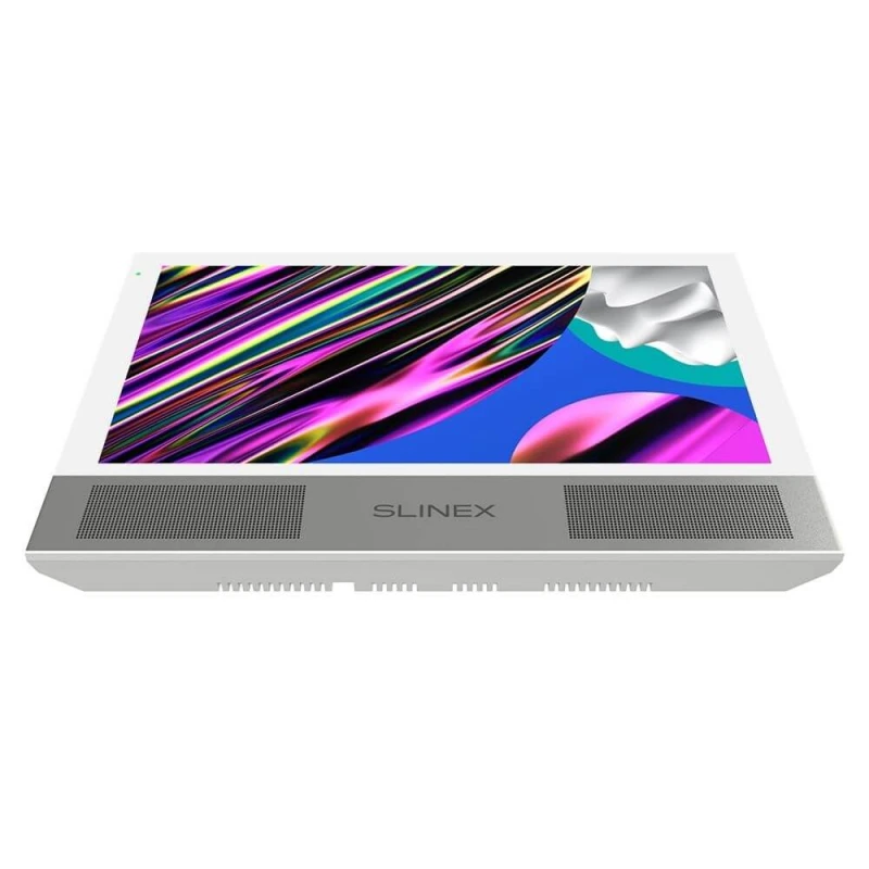 - Домофон Slinex Sonik 10 white оснащен цветным IPS-экраном с диагональю 10 дюймов и разрешением 1024*600 пикселей.