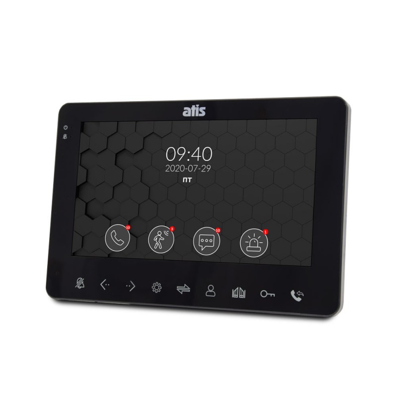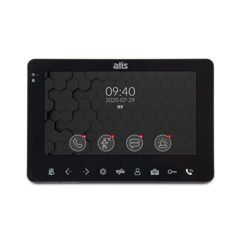 Видеодомофон ATIS AD-780MB с цветным 7-дюймовым TFT-экраном, сенсорными кнопками, возможностью подключения 2 вызывных панелей, 2 аналоговых видеокамер, 2 датчиков тревоги и 1 дополнительного монитора (телевизора) с НЧ-выходом. Поддерживает запись фото/видео, есть детектор движения на 4 канала (одновременно запись с 1, где есть движение), слот для карты памяти до 32ГБ. Цвет - черный.