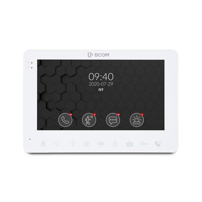 - домофон BCOM BD-780 White оснащен цветным TFT-экраном с диагональю 7 дюймов и разрешением 1024х600 пикселей;