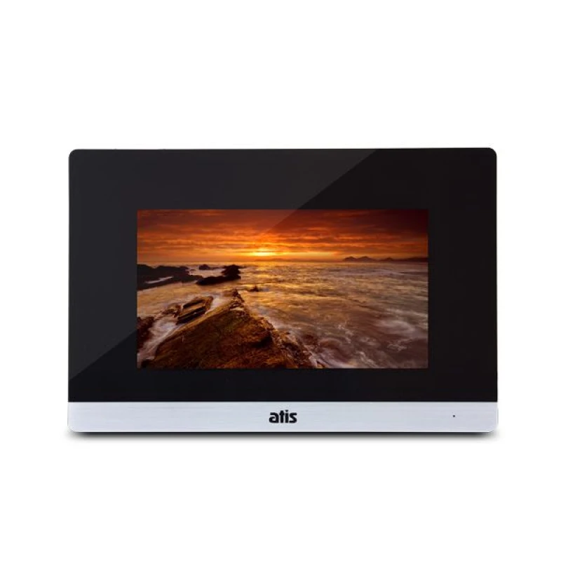 Видеодомофон ATIS AD-750M S-Black с цветным сенсорным 7 дюймовым TFT-экраном, возможностью подключения 2 вызывных панелей, 2 аналоговых видеокамер, 2 датчиков тревоги, 3 видеодомофонов и 1 дополнительного монитора (телевизора). Цвет - черный.