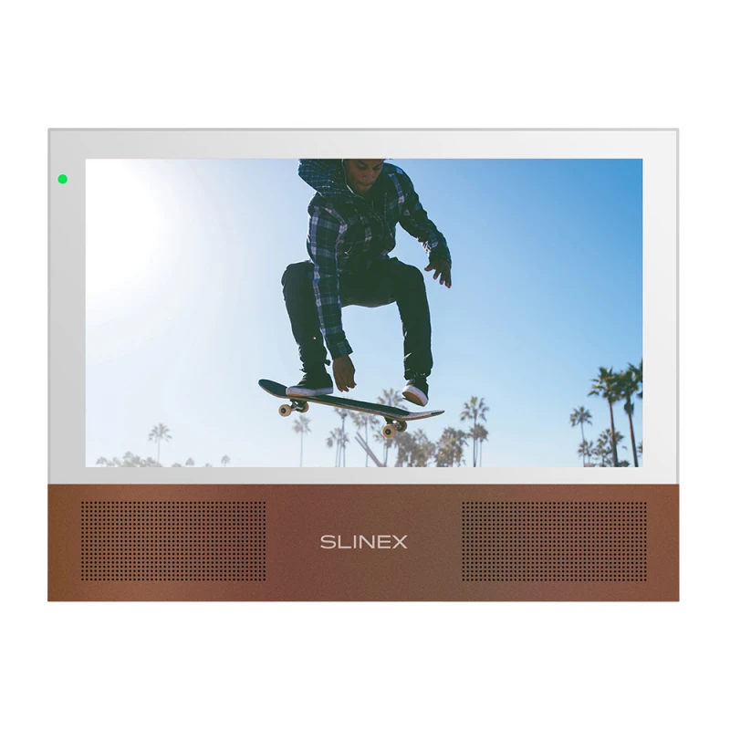 - Домофон Slinex Sonik 7 white оснащен цветным IPS-экраном с диагональю 7 дюймов и разрешением 1024*600 пикселей.