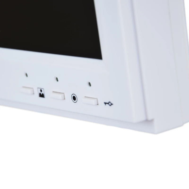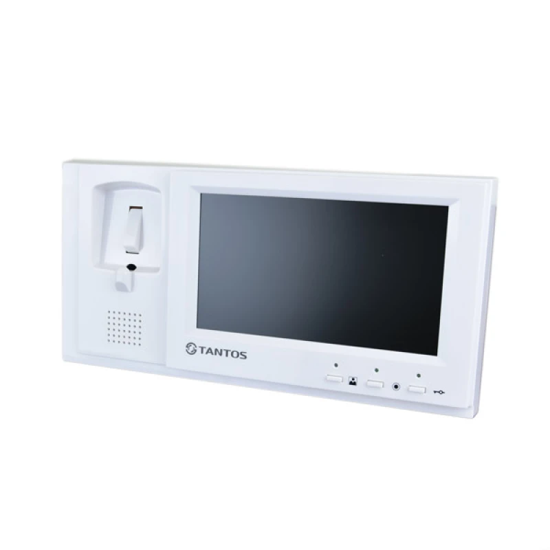 Видеодомофон Tantos Loki с цветным 7 дюймовым TFT-экраном, механическими кнопками управления, возможностью подключения 2 вызывных панелей и 2 аналоговых видеокамер. Цвет - белый.