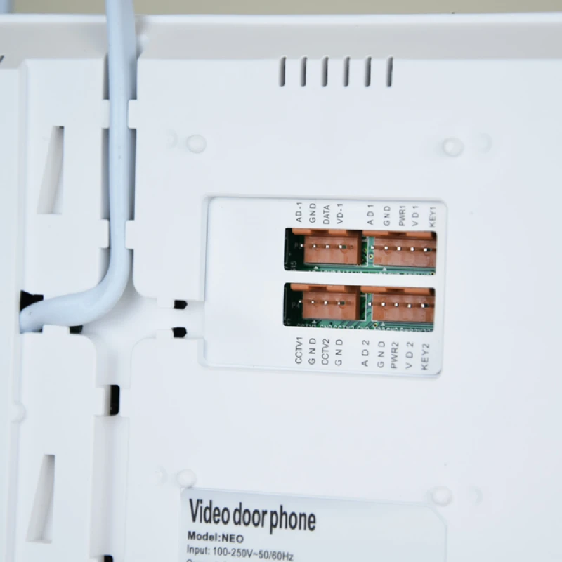 1) установите розетку рядом с местом установки видеодомофона для подключения питания;