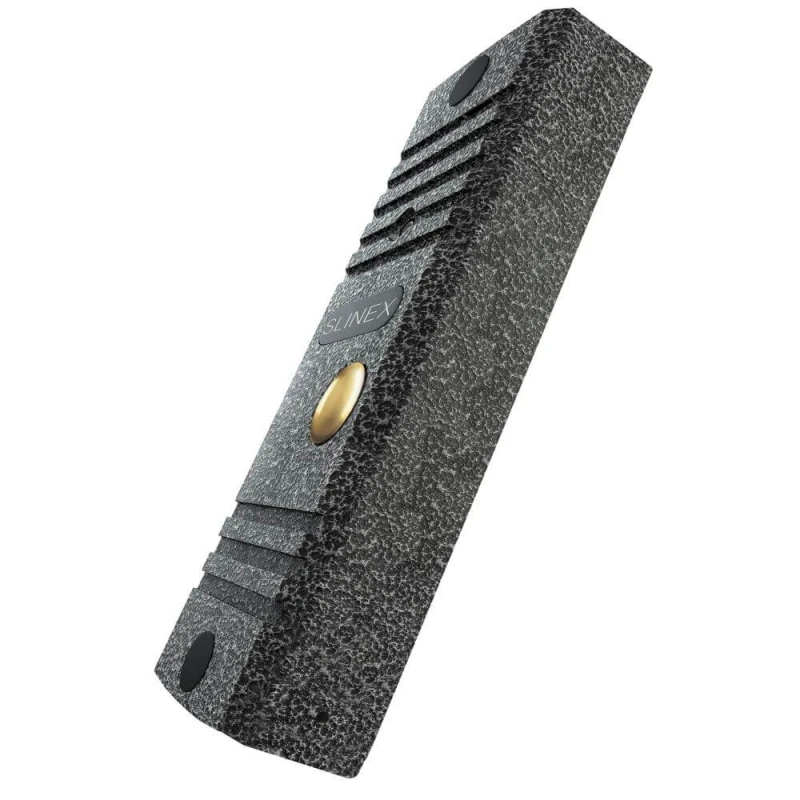 Корпус видеопанели Slinex ML-16HD выполнен из металла с пластиковыми вставками. Класс защиты IP65 (система классификации степени защиты оболочки электрооборудования), что означает надежную защиту внутренних компонентов от попадания пыли и устойчивость к перепадам температур (-40°C ~ +50°C). Небольшие габаритные размеры (122*41*23мм) позволят установить видеопанель практически незаметно и в любом экстерьере.