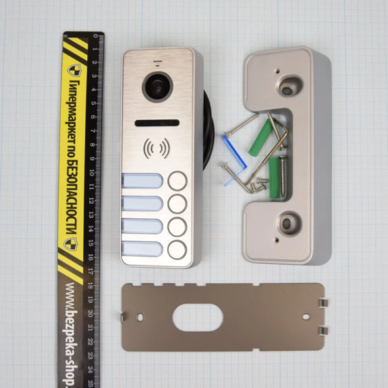 видеопанель, уголок (30°), козырек, комплект крепежных элементов, инструкция
