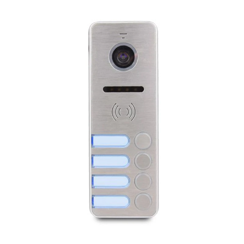 Цветная видеопанель iPanel 2 (Metal) 4 аб. на 4 абонента с высоким разрешением 800 ТВЛ. Возможность управления замком калитки и воротами. Способ установки накладной. Цвет корпуса видеопанели - серый.