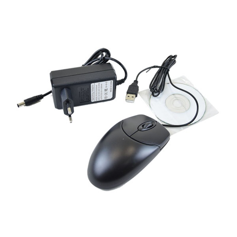 В комплекте поставки прилагается блок питания, USB-мышка, инструкция и программное обеспечение для удаленного администрирования