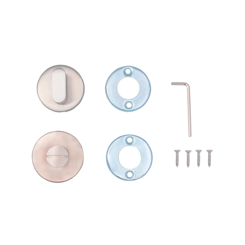 Цвет матовой нержавеющей стали прекрасно подойдет для светлого интерьера. Удобно и легко закрывается изнутри, а снаружи есть возможность аварийного открытия. Подбирается под конкретную модель ручки CISA с круглой розеттой.