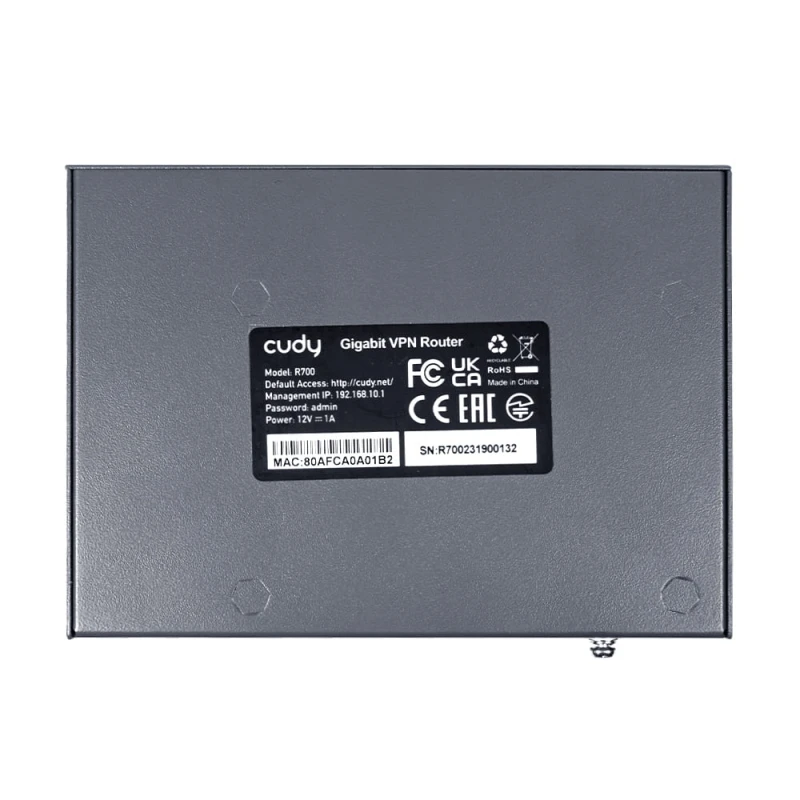 Гігабітний VPN-маршрутизатор; 1 гігабітний порт WAN, 1 гігабітний порт LAN, 3 гігабітні порти WAN/LAN; балансування навантаження; резервне копіювання; VPN сервер і клієнт PPTP / L2TP / OpenVPN / WireGuard / IPsec; підтримка сервісу ZeroTier; IPv6; TR069 / TR098 / TR181 / TR111; DNS через Cloudflare / NextDNS / Google; живлення 12 В/1 А, блок живлення у комплекті; робоча температура 0°C~+40°C; розміри 119 / 85 / 28 мм