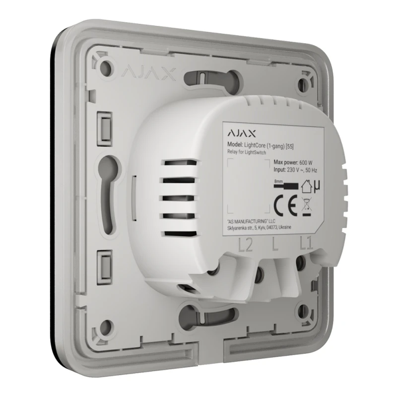 LightSwitch оснащён подсветкой, которая выделяет выключатель в темноте. Подсветка не яркая, поэтому не будет мешать пользователям, даже если выключатель установлен в спальне возле кровати. При необходимости подсветку можно отключить в приложении Ajax.