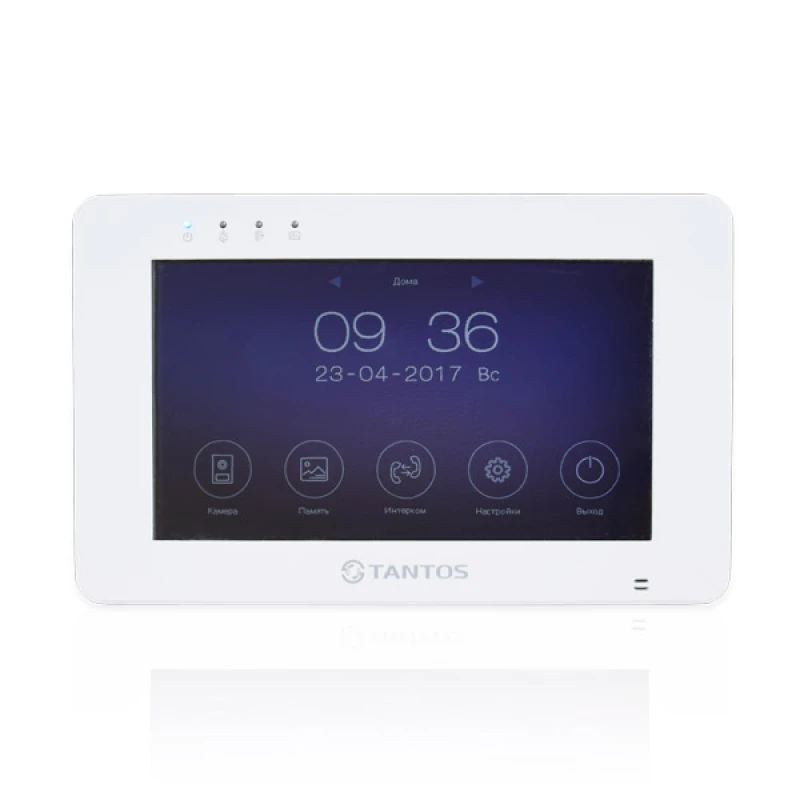 Видеодомофон Tantos Rocky 7" с цветным сенсорным 7 дюймовым TFT-экраном, встроенным Wi-Fi модулем, записью кадров на SD карту, возможностью подключения 2 вызывных панелей и 2 аналоговых видеокамер. Цвет - белый.