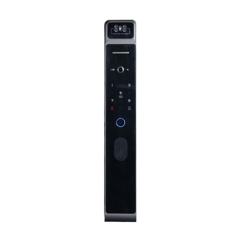 Біометричний автономний електрозамок з WiFi, з розпізнаванням облич, зчитувачем відбитків пальців та карт Mifare 13.56 МГц; відімкнення за допомогою: розпізнавання обличчя, відбитку пальця, коду, картки, застосунку, ключа; застосунок для роботи TTLock; відеокамера 2Mp; живлення 4200 мАг літієвий акумулятор, робота від акумулятора 3-4 місяці; інтерфейс microUSB для заряджання; підходить для дверей товщиною 40-90 мм; 2 механічні ключі; матеріал корпусу алюмінієвий сплав; розміри передня панель 430 / 70 / 45 мм, задня панель 392 / 70 / 26 мм, серцевина 24-240 6068