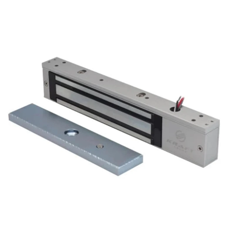 Електромагнітний замок Kraft KRF-280LED з силою утримання до 280 кг. Живлення 12 В, споживання 400 мА. Вбудований таймер затримки від 0 до 10 секунд, світлова індикація. Накладний монтаж.