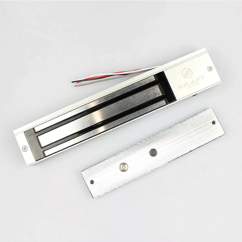 Замок поставляється в комплекті з двох складових: блоку з електромагнітом та металевої планки з високою магнітною проникністю. Частина з електромагнітом встановлюється на дверну коробку, а відповідна планка – на двері.