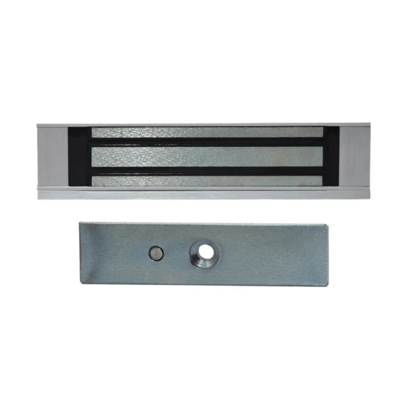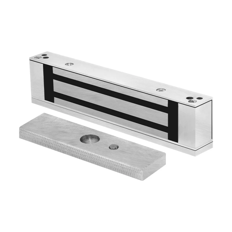 Замок поставляється в комплекті з двох складових: блоку з електромагнітом та металевої планки з високою магнітною проникністю. Частина з електромагнітом встановлюється на дверну коробку, а відповідна планка – на двері.