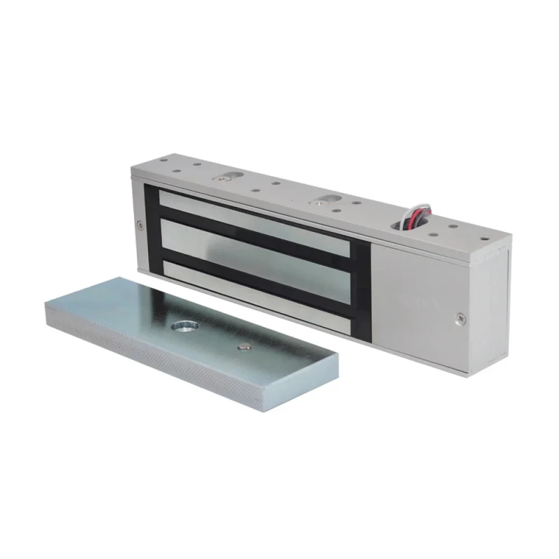 Замок поставляється в комплекті з двох складових: блоку з електромагнітом та металевої планки з високою магнітною проникністю. Частина з електромагнітом встановлюється на дверну коробку, а відповідна планка – на двері.
