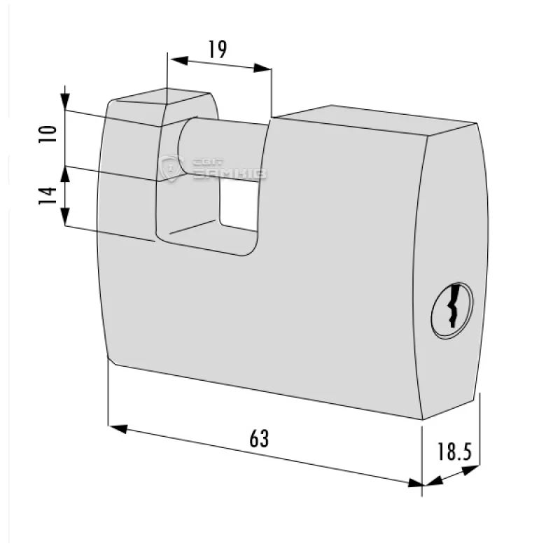 - Ширина замка – 63 мм.
