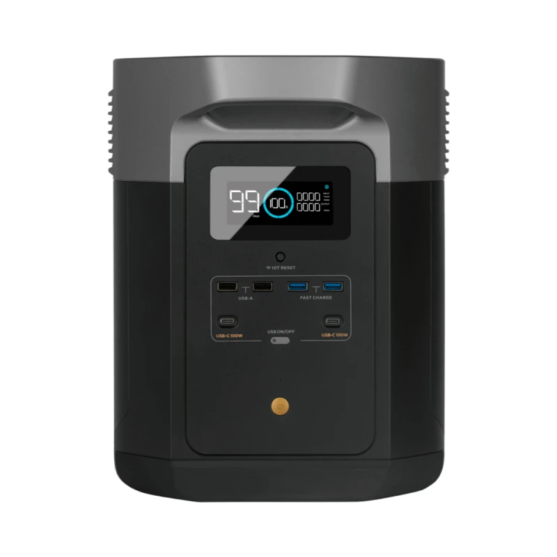 - Благодаря технологии X-Boost EcoFlow DELTA Max может питать мощные устройства мощностью до 3000 Вт. Это значит, что при отключении электроэнергии вы можете продолжать питать холодильник, сушилку и т.д.