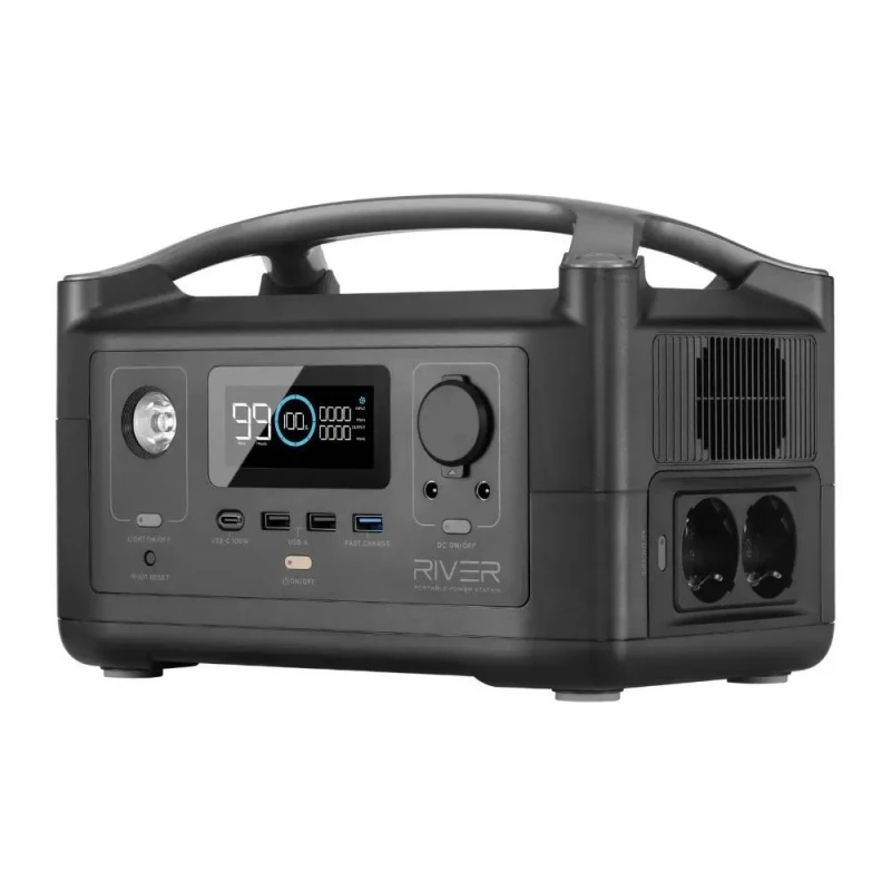 Зарядная станция EcoFlow RIVER - портативная электростанция, которая способна заряжать до 9-ти устройств одновременно. Обладает емкостью батареи 288 Вт и питает 80% основных устройств с потреблением до 600 Вт.