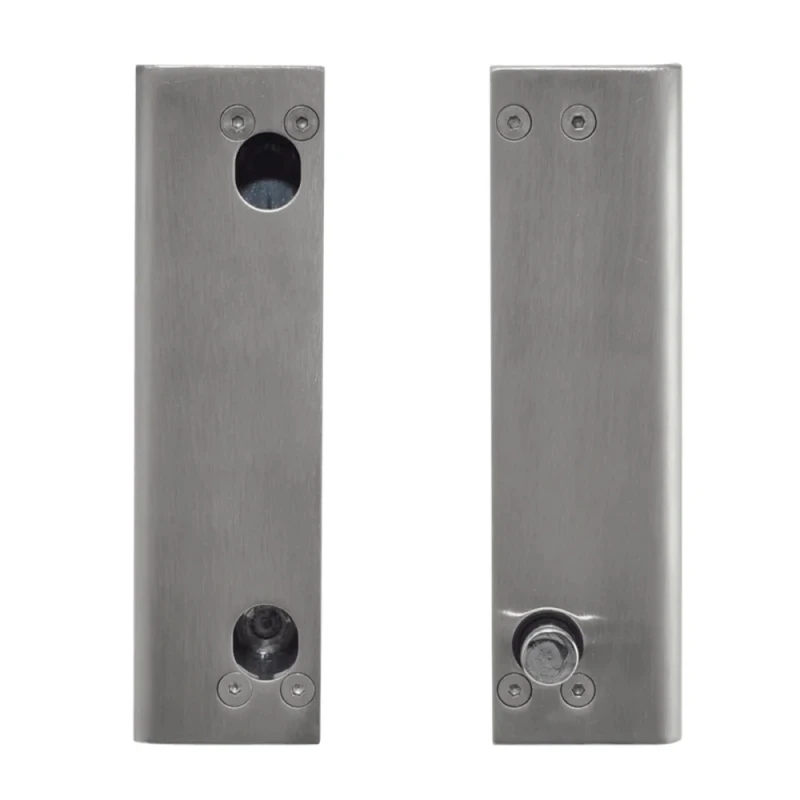 Trinix YB-150+ NC – накладна електроригельна защіпка, нормально-замкненого типу, з таймером затримки зачинення дверей 0/3/6/9 секунд, для монтажу на скляні двері.