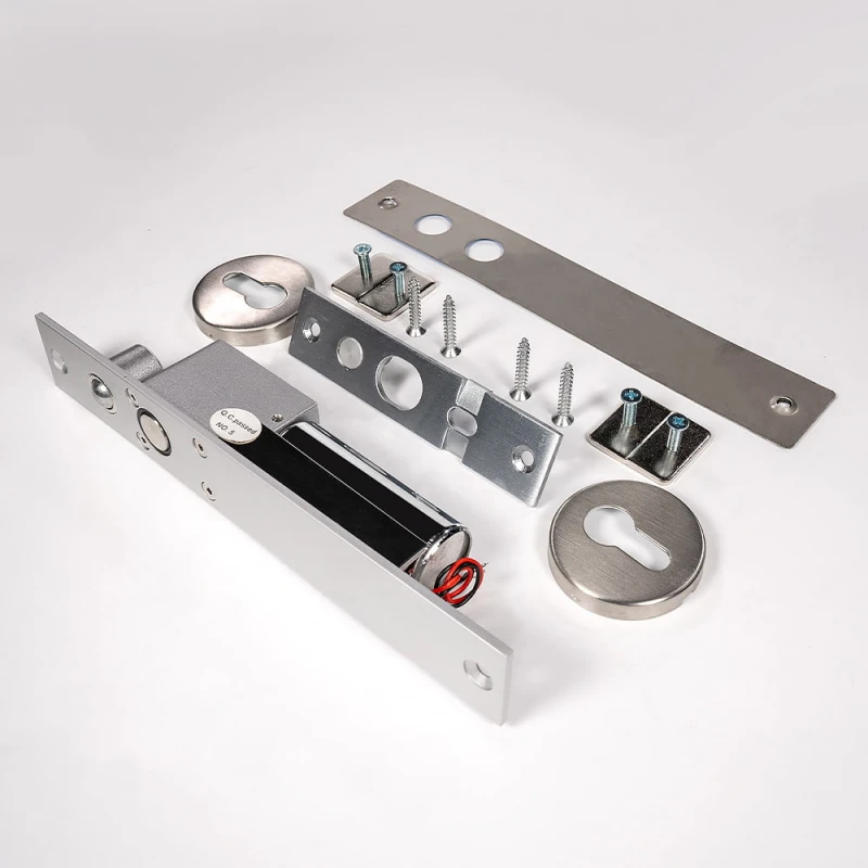 - Відноситься до нормально-розімкненого типу: за відсутності живлення – двері відчинені, а при подачі живлення защіпка замикається.