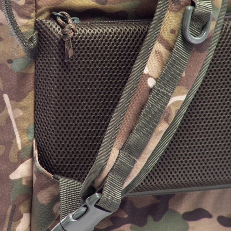 - По бокам и внешней стороне расположены крепления MOLLE, можно разместить дополнительное оборудование снаружи рюкзака, а по бокам - антенны и провода.