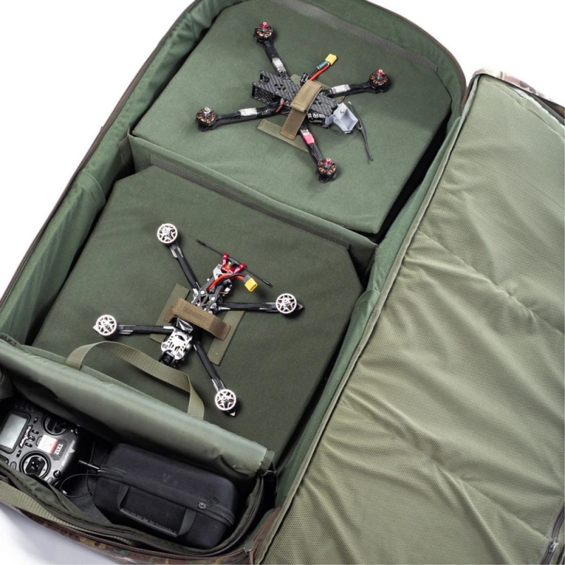 2 бокса размером по 46×40 см для дронов, с мягкими лямками на липучке для фиксации дронов.