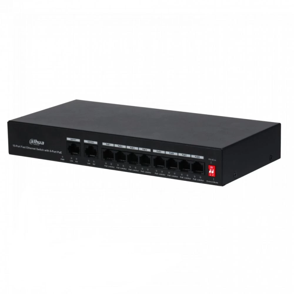 Некерований 10-портовий PoE-комутатор Dahua DH-PFS3010-8ET-65 з 8 портами PoE